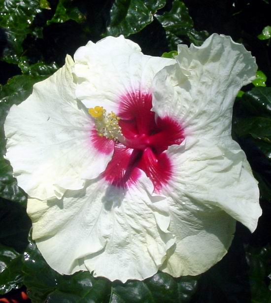 Charlie's Angels 8 to 10 inches. Single white with dark rosy pink center. Very textured and ruffled. Very white. Very dramatic.