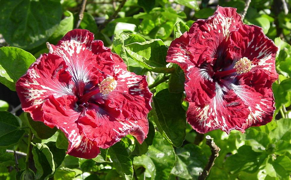 8 to 10 inches. Big single maroon with black (very black) center and gold splashes and spots. Ruffled petals. Perfect!